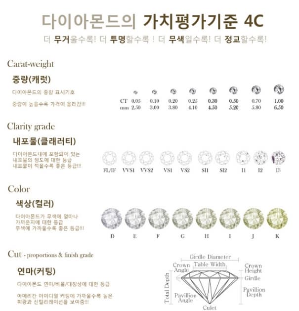 지금까지 소개해드린 골든듀를 비롯한 다양한 브랜드의 다이아반지를 구경하셨나요? 너무나 예쁜 반지들이지만, 자주 구매가 어려운 다이아몬드 쥬얼리를 사실 때는 관련 상식을 알아두시면 좋은데요, 계속해서 여러분께 필요한 정보를 알려드리겠습니다.
