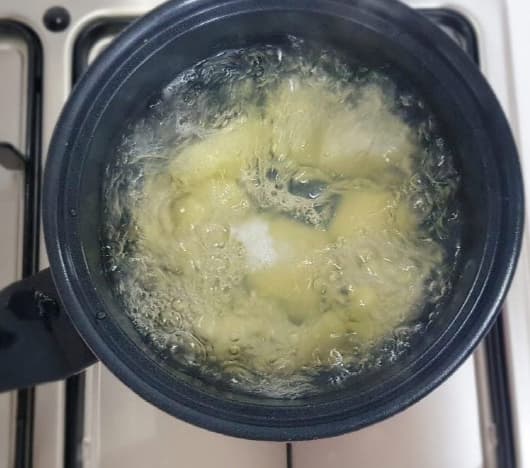 - 준비한 감자를 끓는 냄비 물에 넣고 삶는다.