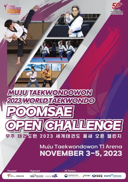 세계태권도연맹(총재 조정원, 이하 WT)이 주최하고 태권도진흥재단(이사장 이종갑)과 대한태권도협회(회장 양진방)가 공동 주관하는 '무주태권도원 2023 세계태권도품새 오픈 챌린지'가 11월 3일부터 태권도원 T1경기장에서 개최됩니다.