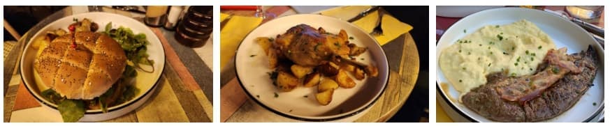 주문한 메뉴가 나오자 다들 첫 반응은 실망한 기색이 역력했습니다. 너무나 평범했기 때문입니다. 하지만 너무나 배가 고팠기에 곧바로 먹기 시작했습니다. 그런데 다들 먹어보고 나서는 엄지 척을 했습니다. 햄버거는 소고기를 바로 구운 패티가 들어간 수제버거였고, 닭고기 요리는 향신료가 완벽하게 베인 바비큐 스타일이어서 호불호 없이 먹을 수 있는 맛이었습니다. 스테이크는 정확한 부위명은 알 수 없었지만 접시에 같이 담긴 소스 맛이 일품이었습니다.